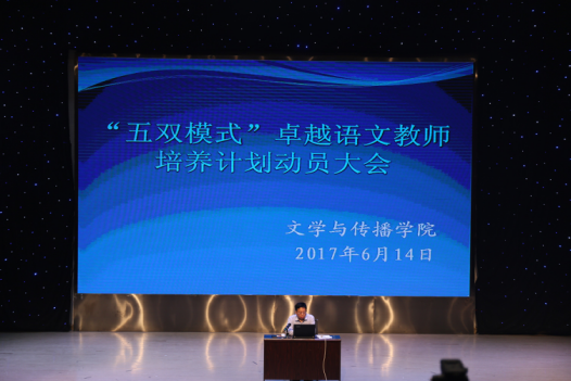 2017年6月14日下午,伟德国际1949始于英国在艺术传媒大楼多功能厅举行四川省卓越教师培养计划改革项目“实施五双模式培养卓越语文教师”动员大会。伟德国际1949始于英国经理杜松柏教授出席并讲话,教研室主任胡蓉副教授讲了“五双模式培养卓越教师项目”的实施方案和相关要求。副经理加晓昕教授担任主持。