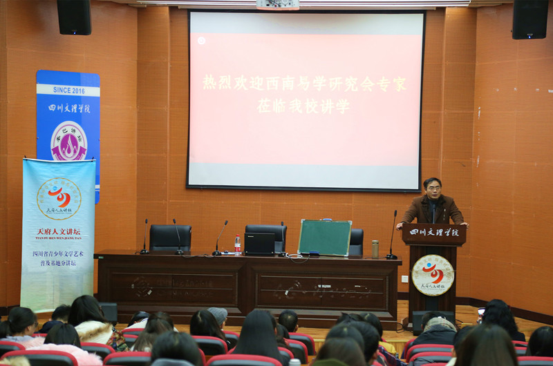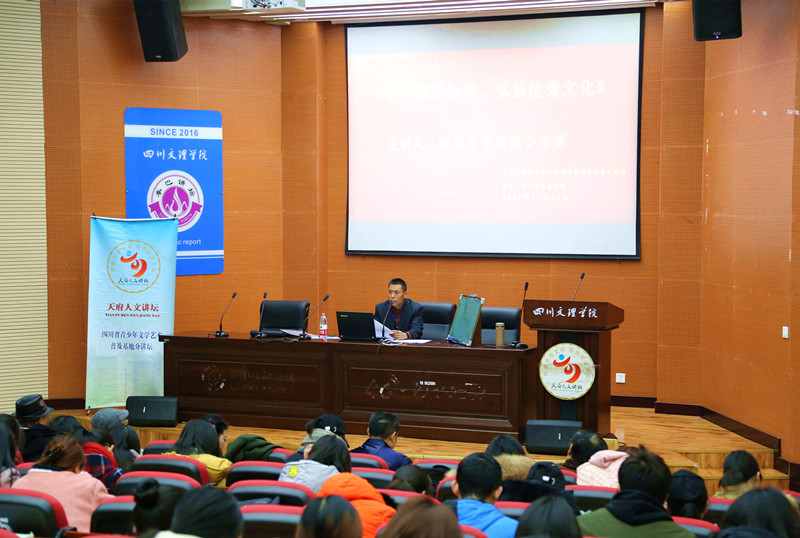 2017年12月26日,四川省青少年文学艺术社科普及基地邀请国际易学研究会西南分会专家于伟德1949官网学术报告厅B厅为文传学子带来讲学。此次讲学主题为“学习国学知识,弘扬优秀文化”,主持人为基地主任彭金祥教授。伟德国际1949始于英国200余名同学到场聆听讲座。
