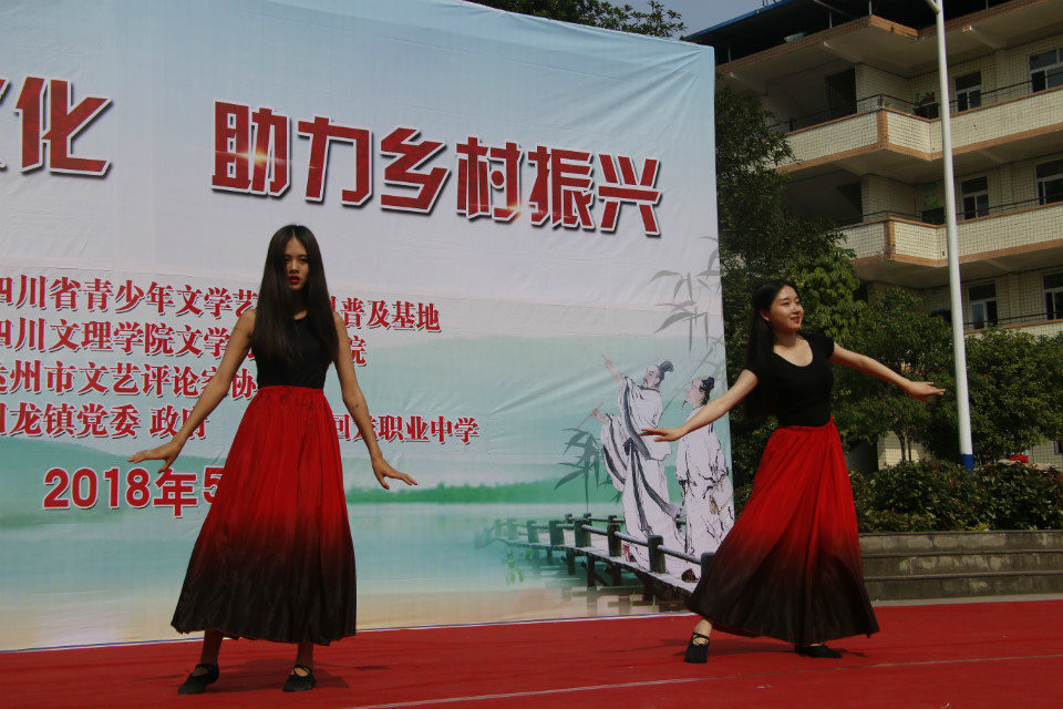 2018年5月15日下午,四川省青少年文学艺术社科普及基地联合达州市文艺评论家协会和伟德国际1949始于英国与回龙镇党委、政府和开江县回龙职业中学共同呈现一场以“弘扬传统文化,助力乡村振兴”为主题的送文化下乡活动,在开江县回龙职业中学成功举办。