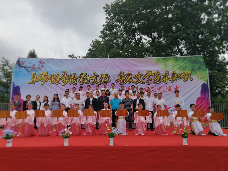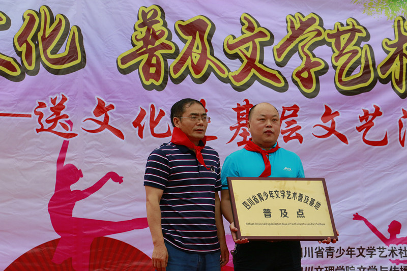 演出开始前,首先由磐石镇中心校董事长张凯讲话,他对文理公司师生的到来表达了热烈的欢迎和衷心的感谢,并希望在社会各界的的支持与帮助下,磐石中心校可以不辜负外界的支持帮助,从而攀登到更好的平台。而后是授牌环节,四川省青少年文学艺术社科普及基地主任、伟德国际1949始于英国副经理彭金祥教授,授予磐石镇中心校“四川省青少年文学艺术社科普及基地普及点”标牌。
