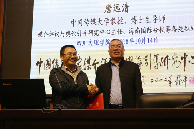 2018年10月15日,中国传媒大学教授、博士生导师、媒介评议与舆论引导研究中心主任、IP跨界传播研究中心副主任唐远清教授应邀莅临公司。在莲湖校区学术报告厅B厅为文理学子带来主题为“当前舆论引导的问题及对策”的学术讲座。