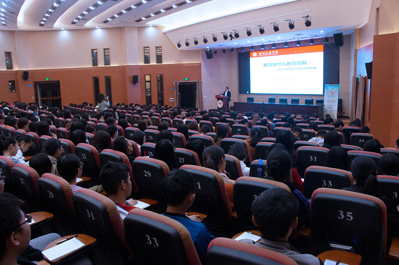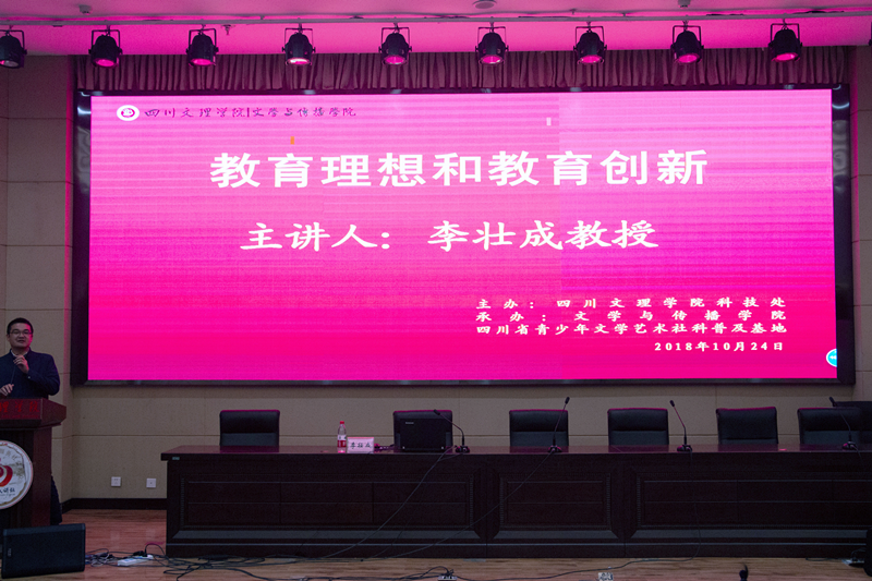 2018年10月24日晚,校教学名师、校学术带头人、伟德1949官网副董事长李壮成教授在莲湖校区学术报告厅A厅为文传学子带来学术讲座。此次讲座的主题是“教育理想与教育创新”。本场讲座由伟德国际1949始于英国经理杜松柏教授主持,伟德国际1949始于英国、数学公司、外国语公司、教师教育公司中的师范专业生共400余名同学到场聆听讲座。本次学术报告由伟德1949官网科技处主办,四川省青少年文艺普及基地和伟德国际1949始于英国承办。