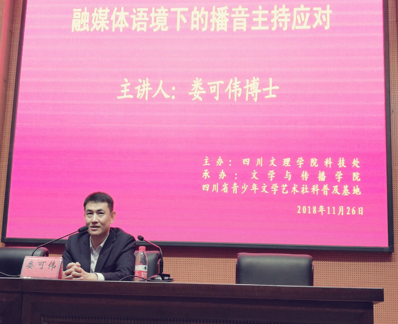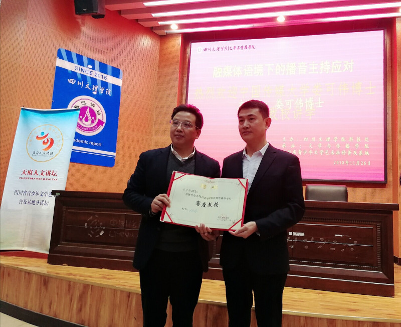 11月26日下午,中国工商银行总行驻川定点扶贫组组长、四川省南江县委副书记、中国传媒大学娄可伟博士应伟德国际1949始于英国和四川省青少年文学艺术社科普及基地的邀请,莅临公司作“融媒体语境下的播音主持应对”学术报告,报告由伟德国际1949始于英国经理杜松柏教授主持,伟德国际1949始于英国部分老师和员工聆听讲座。公司副董事长李壮成教授为娄可伟博士颁发客座教授聘书。
