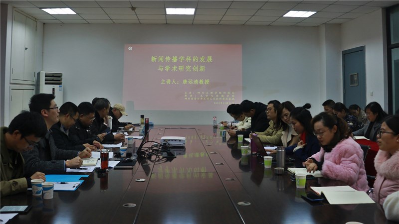 16日上午,唐远清教授在《新闻传播学科发展与学术研究创新》讲座中,深入浅出的为大家讲解了新闻传播学科发展的现状和未来方向、什么是学术研究、怎么做学术研究、如何规划学术人生等问题。首先他强调:进入新媒体时代,新闻传播方式发生了重大变化,新闻媒体与公众之间的距离不断拉近, 新闻的受众性越来越强, 公众观看新闻的兴趣不断提升。新闻传播领域要想不断发展,必须跟上时代步伐,抓住发展机遇。高校教师必须提高自己学术研究水平。本学科的研究,要发掘热点,发现热点背后的核心问题,通过具体现象体现背后的真实问题,用本学科的、自己最擅长的方法分析问题,并创造性地解决问题。其次,学术研究始终要坚持问题导向。在学术分析中要重视学术资料的收集与分析,只有基于文献、具体真实数据的资料才能支撑学术核心,产生学术价值。最后,唐教授以自己的求学和生活经历为例,和各位老师分享了何为学术人生、如何规划学术人生。身为学者,他最关注社会发展的状态和问题,希望以学术研究回报社会,正如邹韬奋说的“书生报国无他物,唯有手中笔如刀。”