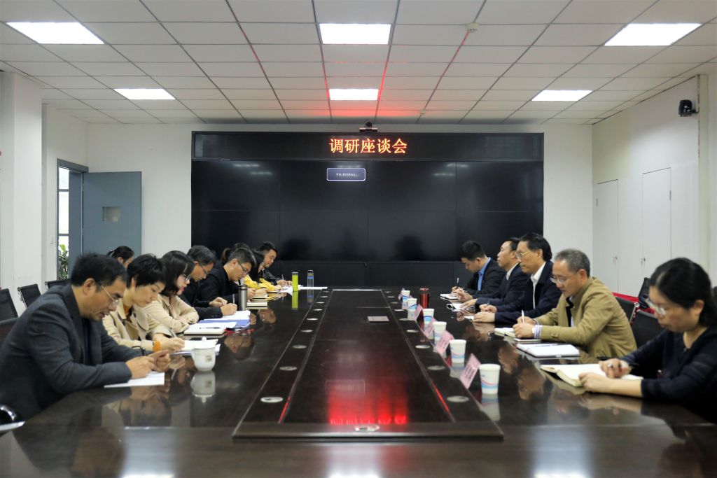 10月14日下午,公司党委书记王成端率党委宣传部、党委组织部、党办、党委学工部、教务处等部门负责人来公司,调研主题教育开展和“四圆同心”办学思路的落实情况。