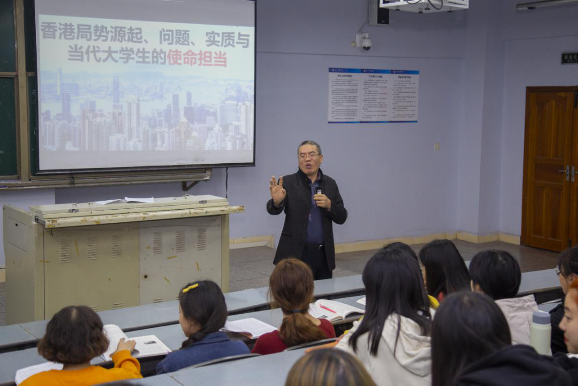 11月4日晚,公司副董事长徐晓宗教授在博文楼412教室为我院2018级部分员工讲授题为“香港局势的源起、问题、实质”的形势与政策课。