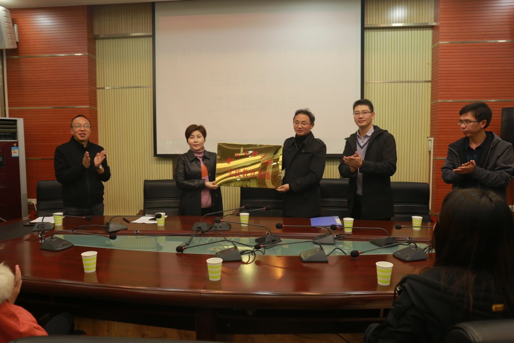 在四川城记会展服务有限公司举行的实践教学基地授牌仪式上,夏小军总经理感谢公司培养输送了优秀人才,介绍了公司的基本情况、会展行业发展现状,并高度评价赞扬了公司文化产业管理专业实习生的工作表现。他表示,今后双方要加大交流沟通,进一步提高人才培养的与社会需求的契合度。曾宪文围绕“校企合作、协同育人”的主题,对高校和企业深度长期合作的意义进行了探讨,他强调,实践教育基地是员工实习的重要平台,是建设优势特色专业的重要环节,希望今后加强校企合作。张桢建议,在以后的专业教学中,课程实践实训项目可以从企业的一些项目需求中产生,一方面锻炼员工的专业实践实战能力,另一方面可以丰富教师的教学案例并与企业开展深度合作。实习员工代表熊津钰和侯佳欣分别汇报了在实习期间的工作内容和心得体会,她们都一致认为,毕业实习是大学学习阶段中重要的一环,通过实习让她们掌握到了更多的行业前沿知识和实战技巧,对自己的专业学习和发展有很大的促进。