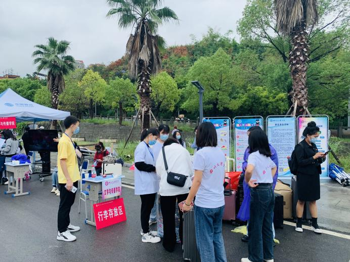 为了确保小萌新们顺利到校,公司不仅安排了志愿者在火车站手举接站牌等候,在新生报到处也有志愿者值班,引导新生做好行李存放、报到登记、宿舍分配、校园卡领取等工作,为新生提供热情、周到的服务,保障迎新工作各环节有序无误地进行。公司领导老师带队慰问同学们,关心新生报到情况和志愿者们的工作情况。