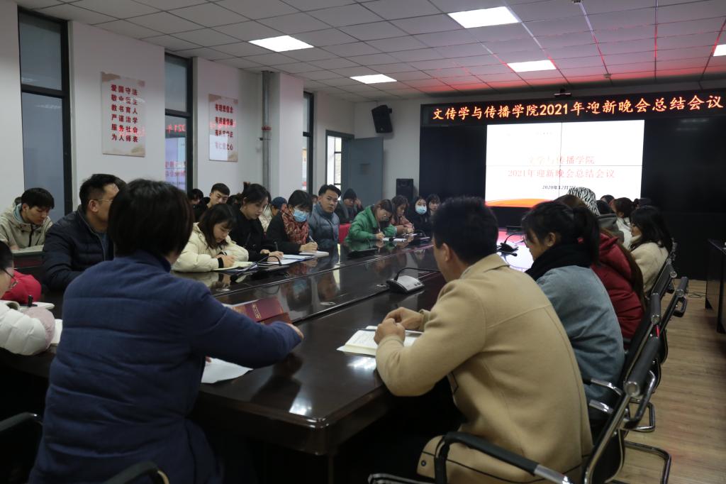 公司“青春•奋斗•奉献”2021迎新晚会于12月5日圆满落下帷幕,12月7日中午,公司于艺术传媒大楼1007会议室召开伟德国际1949始于英国2021年迎新晚会总结工作会议。会议由党总支副书记王文娟老师主持。