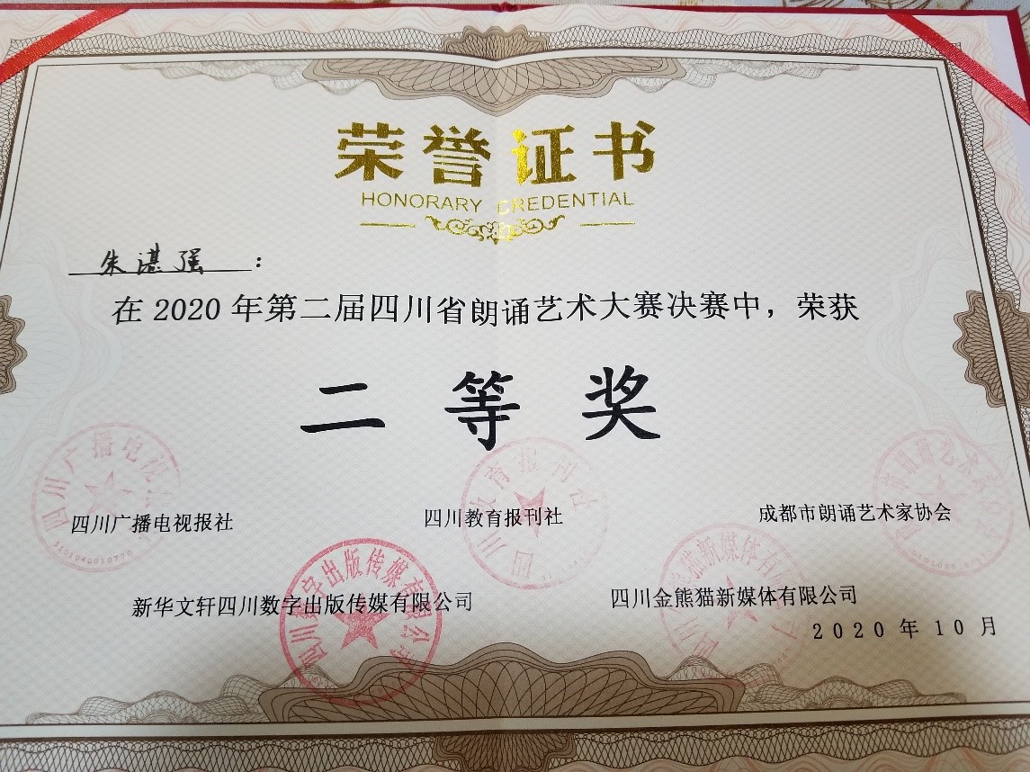 11月21日,“第二届四川省朗诵艺术大赛”总决赛在成都四川广播电视台S1演播大厅圆满落幕,公司员工朱谌强获得二等奖。