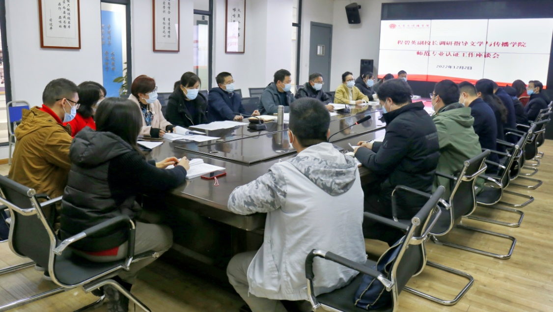 评估处处长文学运、教务处副处长周波、文学与传播公司党政班子成员、科级以上干部、师范专业负责人以及部分教师代表出席此次会议。
