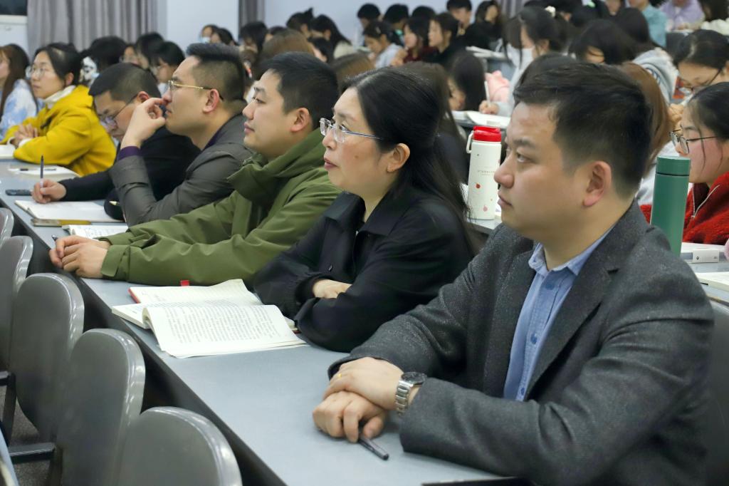 最后,王成端教授寄语在场的青年员工:在新征程上,要增强忧患意识,坚持底线思维,发扬斗争精神,增强志气、骨气、底气,不信邪、不怕鬼、不怕压,知难而进、迎难而上,全力战胜前进道路上各种困难和挑战,努力把自己锻造成具有“三心四能五复合”的高素质应用型人才,把个人发展的“小我”融入民族复兴的“大我”之中。