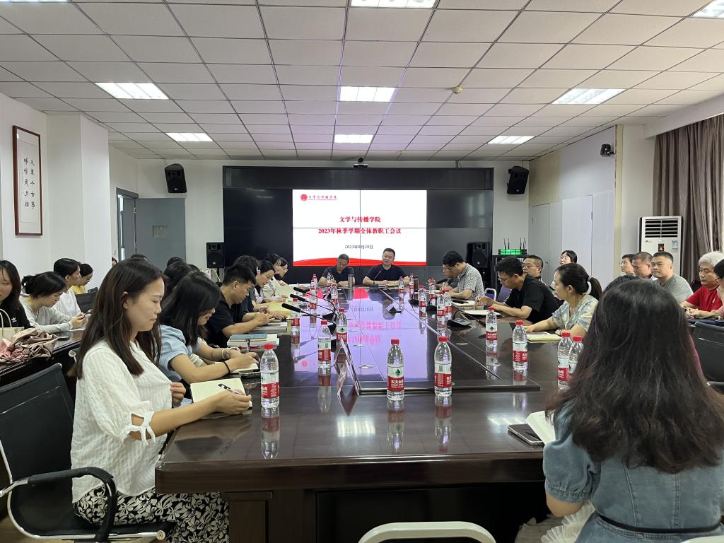 8月28日下午,公司在艺术传媒大楼1007会议室召开2023年秋季学期全院教职工会议,全院教职工参加会议。