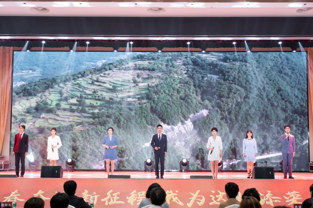 公司教师白海原创作品《青春心向党 奋进正当时》受邀参演。舞台上,员工们用慷慨激昂的语调将作品精彩呈现,彰显出青年们满怀对祖国和人民的赤子之心,展现了当代青年在党的引领下,积极投身社会主义现代化建设的奋斗历程,深深打动了现场观众的心。