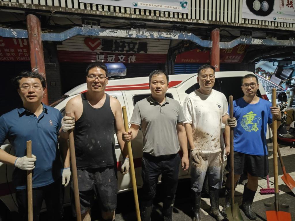 7月11日晚,由冉林、张俊峰、成立、安前进、宋涛等五位党员教师组成的公司的防汛抢险工作队,迅速集结并奔赴达州市防汛排洪一线。