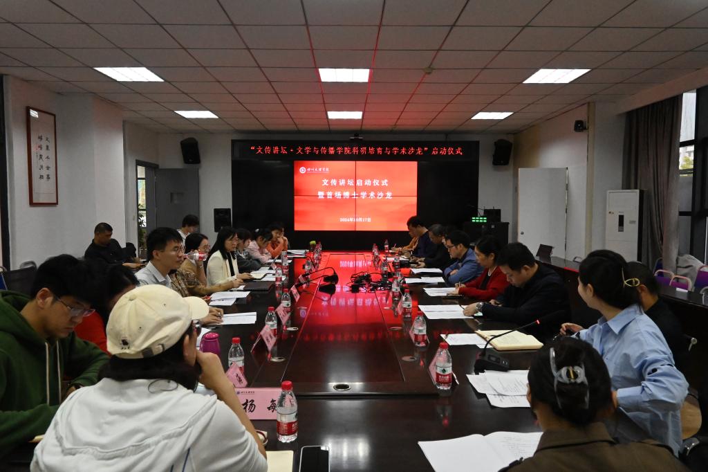 本次博士学术沙龙首场讲座由毕业于南京大学的吴健康博士主讲,毕业于华中师范大学的孙娟博士作为学术报告主持人。吴健康博士围绕“从致博物到极性情——中古岁时类诗赋的一种转向”这一主题,深入剖析了中古时期诗赋创作的演变趋势和特点。报告内容丰富、观点新颖,引发了与会人员的热烈讨论。