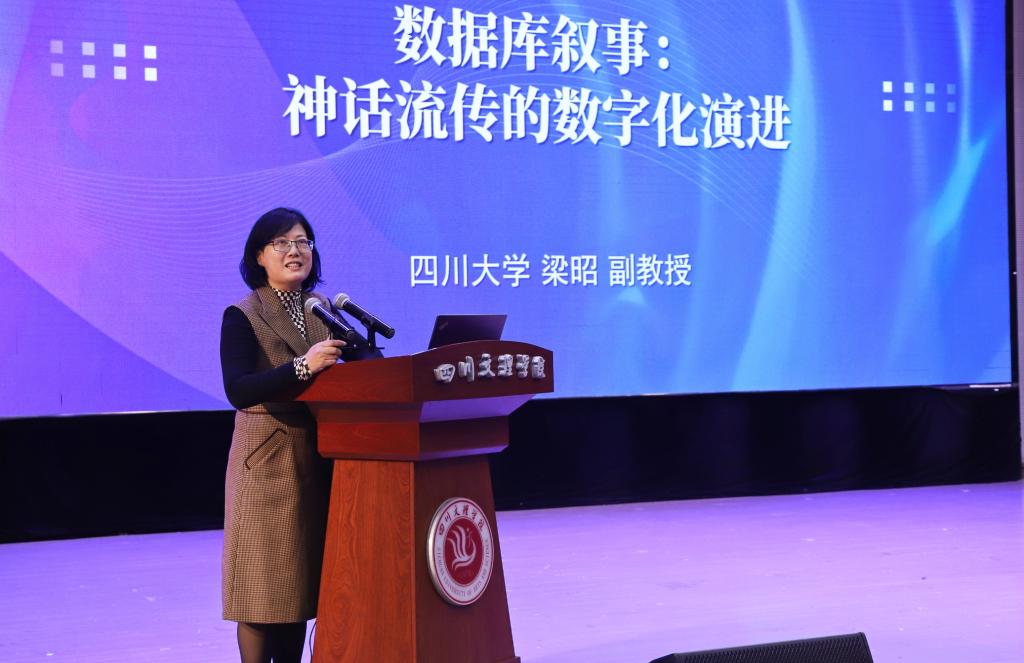 梁昭以《数据库叙事:神话流传的数字化演进》为题,阐述“数据库”不仅是存储、管理信息的数据空间,而且是“后人类”的典型文化形态。神话的数智化即转化为数字虚拟的世界图景。