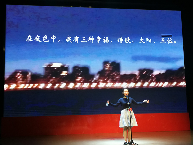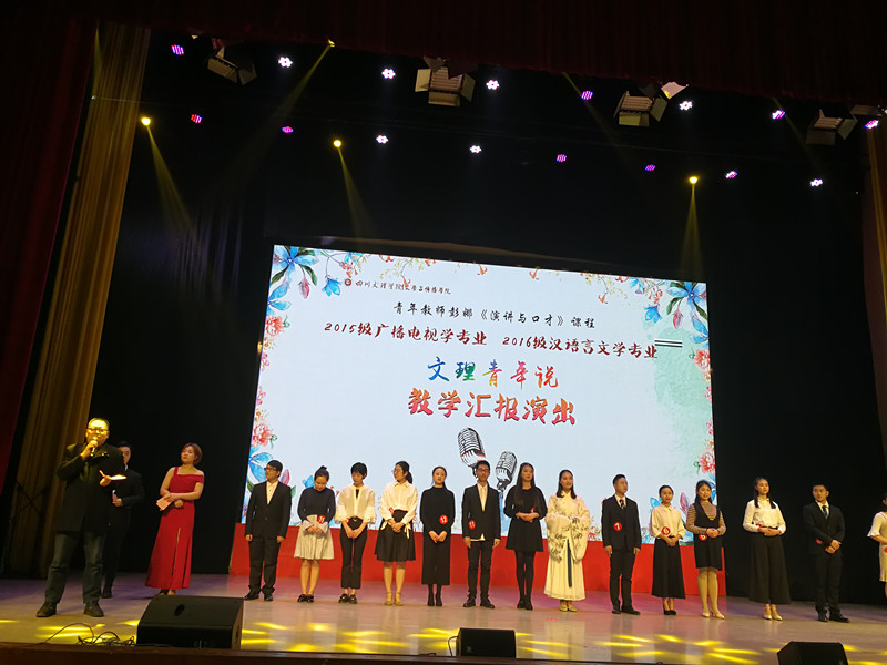 演说结束后,由白新梦、田文斌、沈维康、豆玲慧带来的朗诵《新闻的力量》,给在场观众展现了新闻传媒人以天地为心,与人民为亲的大爱情怀。最后,达州市电视台编委会主任杨洪老师对汇报演出进行了点评,他肯定了“文理青年说”教学汇报演出的创新形式,赞扬了每组团队和现场演讲者们的精彩表现,也表示一批善良、努力、敢吃苦、有担当的文传学子正在成长,未来必定有所作为。