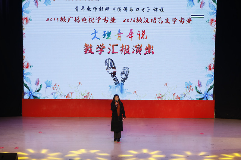 本次汇报演出中,2015级广播电视学专业、2016级汉语言文学专业四个班级的员工分为16组,每组派出一名代表展示自己团队的观点进行演说,各组代表遵守“文理青年说”的口号——因为年轻,所以敢说,通过团队VCR、精美PPT、现场演说,展现了丰富多样,且各具特色的团队风采及演讲内容,向世界发出属于文理青年的声音。