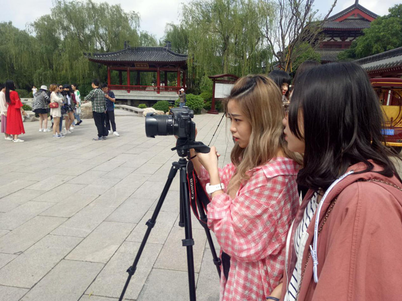 5月5日10点20分,同学们踏上火车,踏上了这次有意义的见习之路。在接下来八天里大家去了“国家5A级景区——华清池”、“中国第一个全方位展示盛唐风貌的大型皇家园林式文化主题公园——大唐芙蓉园”、“大唐帝国的大朝正殿——大明宫”、“西安大慈恩寺佛塔——大雁塔”、“国家5A级景区——华山”等等著名景点。在这些古建筑的熏陶下,在专业老师的指导下,每个小组都在认真完成自己的拍摄作业,劳逸结合,一边品味古色古香的建筑,一边克服拍摄任务中的种种困难。因为每个组的节目形式不同,有旅游类、街坊类、宣传片类等等节目,同学们也会在前一晚认真讨论并安排第二天的拍摄任务。虽然小组难免会有意见相悖的时候,但大家都愿意为了拍摄出的东西更好而让步。