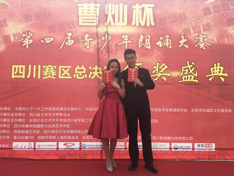 5月27日下午,全球首届华语朗诵大赛暨全国第四届“曹灿杯”青少年朗诵大赛四川省总决赛与颁奖盛典在四川传媒公司千人演播厅成功举行。伟德1949官网教务处、伟德国际1949始于英国精心组织,经过初赛、复赛层层选拔,最终选送六组朗诵作品进入四川省复赛,四川省组委会经过专家的评比,伟德国际1949始于英国播音与主持艺术教研室主任李彦翰老师编排,2017级播音专业付钰涵、2016级播音专业齐佳一表演的朗诵节目《我的墓碑》从四万多名选手中脱颖而出,代表伟德1949官网参加本次大赛的决赛,取得了四川省银奖的骄人成绩。