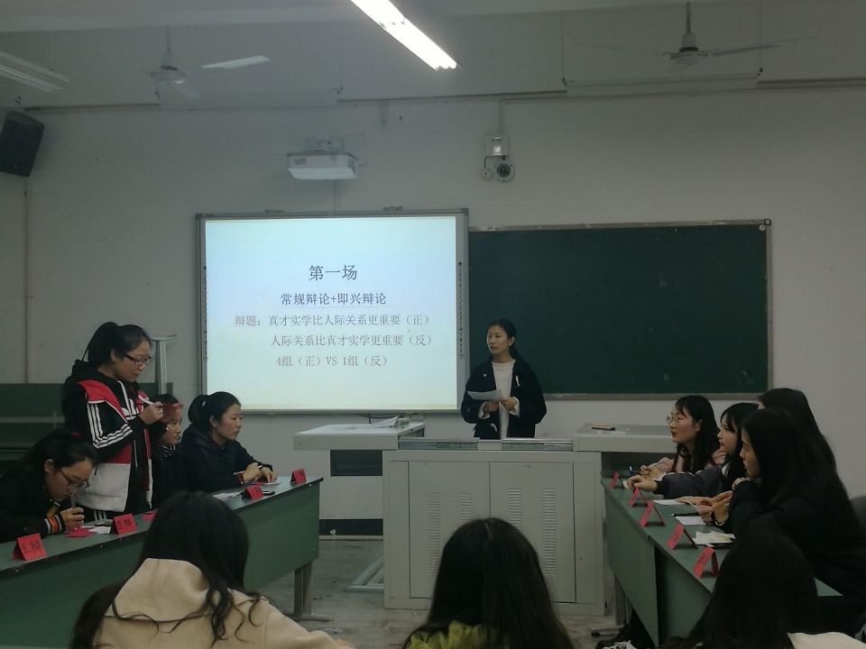 本次辩论赛共分为两轮进行。在前一轮的常规辩论和即兴辩论中,分别以“真才实学和人际关系哪个更重要”和“大学谈恋爱是利大于弊还是弊大于利”为题,后一轮的常规辩论以“社会进步源于勤奋还是懒惰”为题。在辩论过程中,双方辩友准备充分,思维敏捷,逻辑清晰,各执一词,互不相让。经过激烈的交锋,正方和反方各获得一轮胜利。