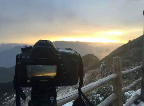 拍摄日出并不容易。冬季的寒风呼呼地吹来,即使同学们穿上了厚棉衣,但还是冻得瑟瑟发抖。下了一夜的雪,路上很滑,同学们小心翼翼地爬向山顶。路上有人出现眩晕,导游解释说,这是高原反应。因此,不过200米的路程,同学们走了接近20分钟,气喘吁吁。终于爬上山顶,接下来的就是漫长的等待。山顶的温度更低了,同学们不断地搓手哈气,想要获取一点温度。三脚架有限,有些同学们不得已,只有用手托举着相机,拍摄日出,刺骨寒风像针一样打在手上。拍摄日出是一个很漫长的过程,有同学问:“冷吗?”另一个同学到:“刚开始举起这相机的时候,特别冷,手抖得不得了,现在冻僵了,感觉不到冷了,也不手抖了。”
