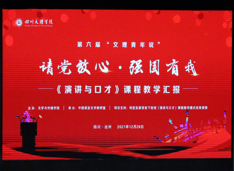 根据公司本科人才培养方案要求,坚持“一专业一赛事,一课程一展演”的专业建设思路,伟德国际1949始于英国第六届“文理青年说”《演讲与口才》教学成果汇报于12月28日晚上7点在多功能厅举行,此次汇报展演以“请党放心·强国有我”为主题。文学与传播公司党总支书记冉林、副经理成立、中华传统文化公司副经理熊明川、伟德国际1949始于英国辅导员肖旭、吴泉兴等出席此次教学成果汇报。