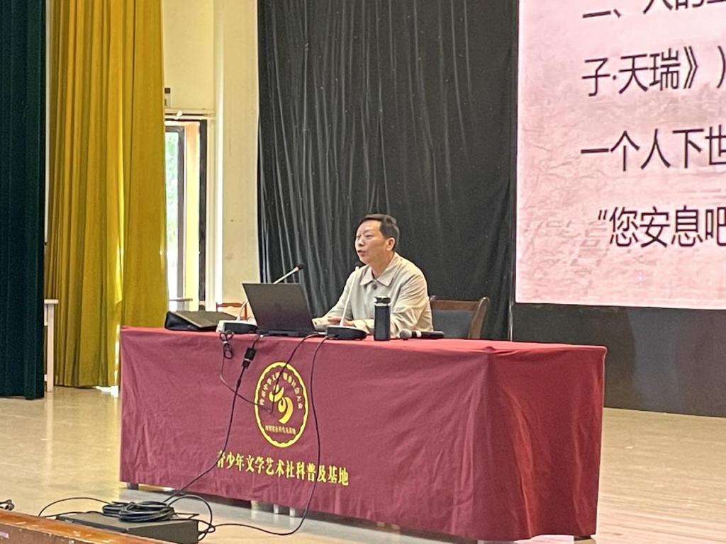 姚春从生命、人的生命、生命的极致、田雁宁生命的极致、田雁宁生命的极致的意义五个方面展开。他先引导同学们思考关于生命的价值与意义,与同学们探讨了“什么是生命?”这一人类终极问题,就此提出了“生命的极致”。随后,他讲述了田雁宁先生得失枯荣的一生,列举了田雁宁先生一生取得的《小说选刊》优秀作品奖、《广州文艺》朝花奖、“天府十大藏书家”等种种成就。他认为,田雁宁先生的小说融汇中国古典小说含蓄之美与西方长句悠长、隽永之美,对今后的小说创作具有积极的借鉴意义。