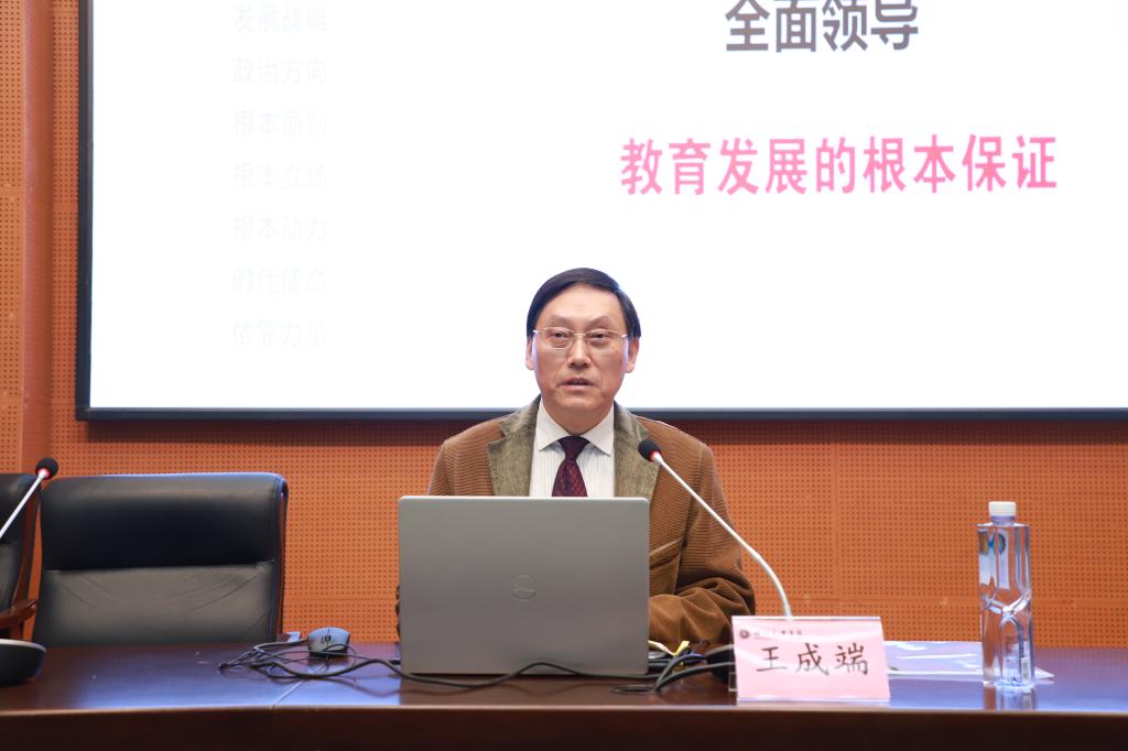 11月23日晚,公司党委书记王成端教授在学术报告厅B厅为公司老员工做形势政策报告,为同学们系统、全面、深入阐释了《习近平总书记教育重要论述讲义》。