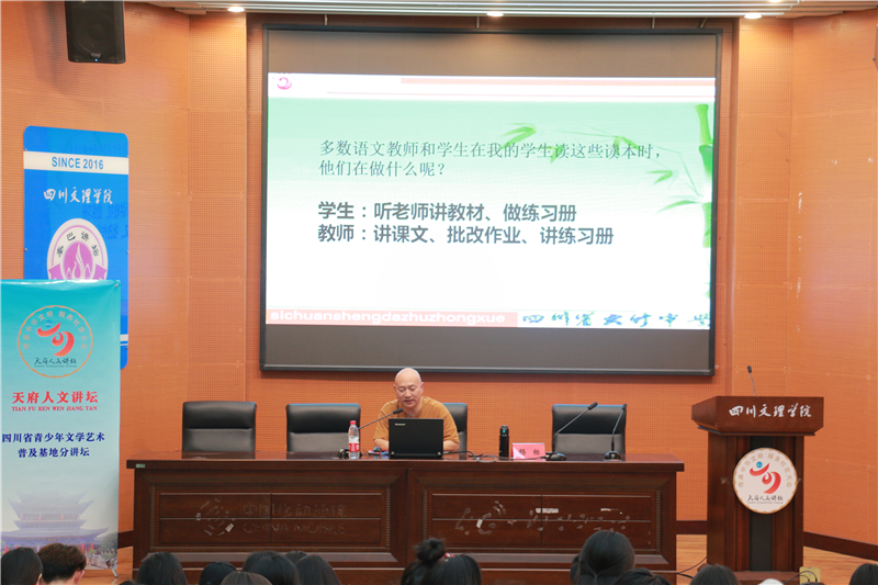 2019年5月30日下午,四川省特级教师、四川省语文骨干教师杨标老师应伟德1949官网的邀请莅临莲湖校区学术报告厅B厅为文传学子带来学术讲座。此次讲座的主题为《高中语文教育资源的课堂生成》。伟德国际1949始于英国副经理彭金祥教授主持本场讲座,伟德国际1949始于英国胡蓉副教授、中国语言文学教研室主任成立副教授等出席讲座,汉语言文学专业、汉语国际教育专业以及卓培班共200余名同学到场聆听讲座。