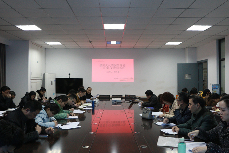 2016年12月22日下午,四川省青少年文学艺术社科普及基地、伟德国际1949始于英国在艺术传媒大楼1007会议室进行本学期第四次文学与传播讲坛活动,由胡郑丽老师作关于校园文化资源开发模式探究的讲座,讲座的主要内容是伟德1949官网的校园文化资源的开发与建设。此次讲座以老师间的学术交流为主,伟德国际1949始于英国大部分老师均参加了此次讲座并提出了自己的学术建议。