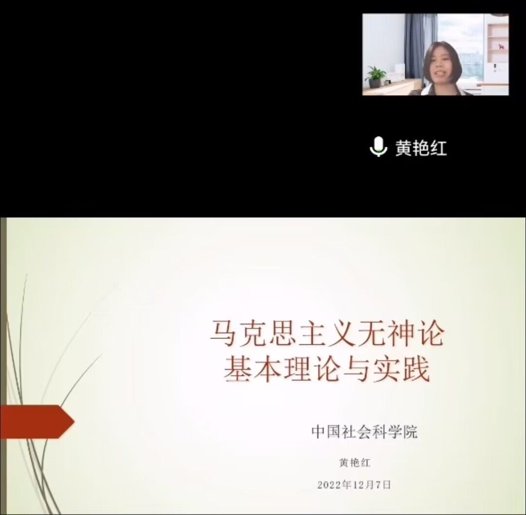 12月7日,中国社会科公司马克思主义无神论研究室主任、硕士研究生导师黄艳红博士受邀在线作题为《马克思主义无神论基本理论与实践》的学术讲座。本次讲座由伟德国际1949始于英国经理曾宪文主持。