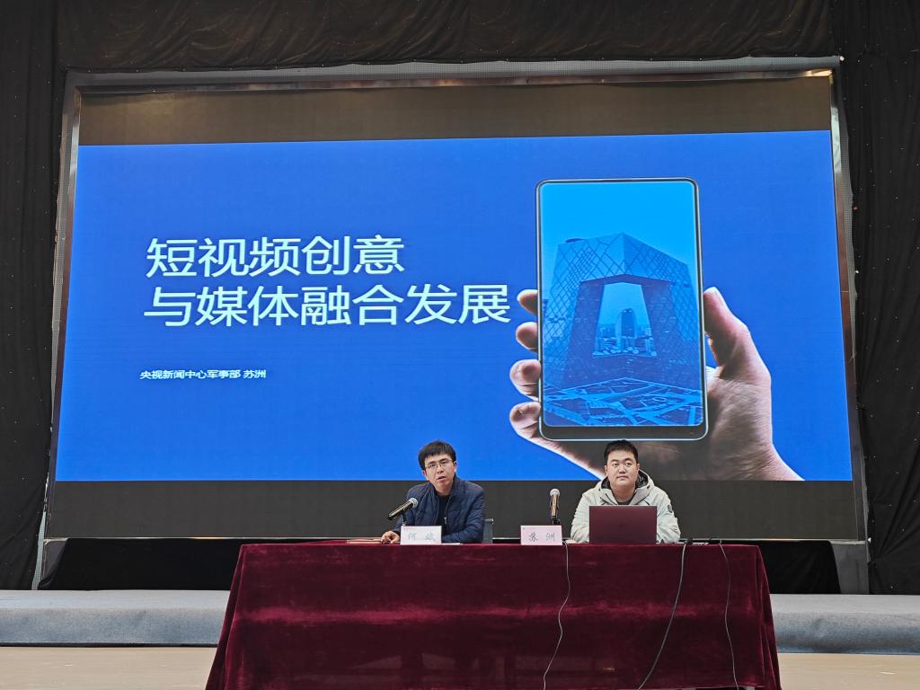 苏洲以短视频创意与媒体融合发展为题,就融媒体新闻报道“从作品向产品转变”;大数据、人工智能将改变内容生产和格局;提高共情能力,实现“隔屏共情”,这三点展开本次讲座。他结合工作经历,如在新冠疫情爆发前期赴武汉一线报道新闻,采访天安门广场国旗护卫队等,重点阐述新闻有真实的和心理的两个现场,要用心理激活度高的情绪去做新闻。针对短视频创作他建议要重点从卖点要清晰、表达要高效、社交属性以及人格化表达四个方面着手。