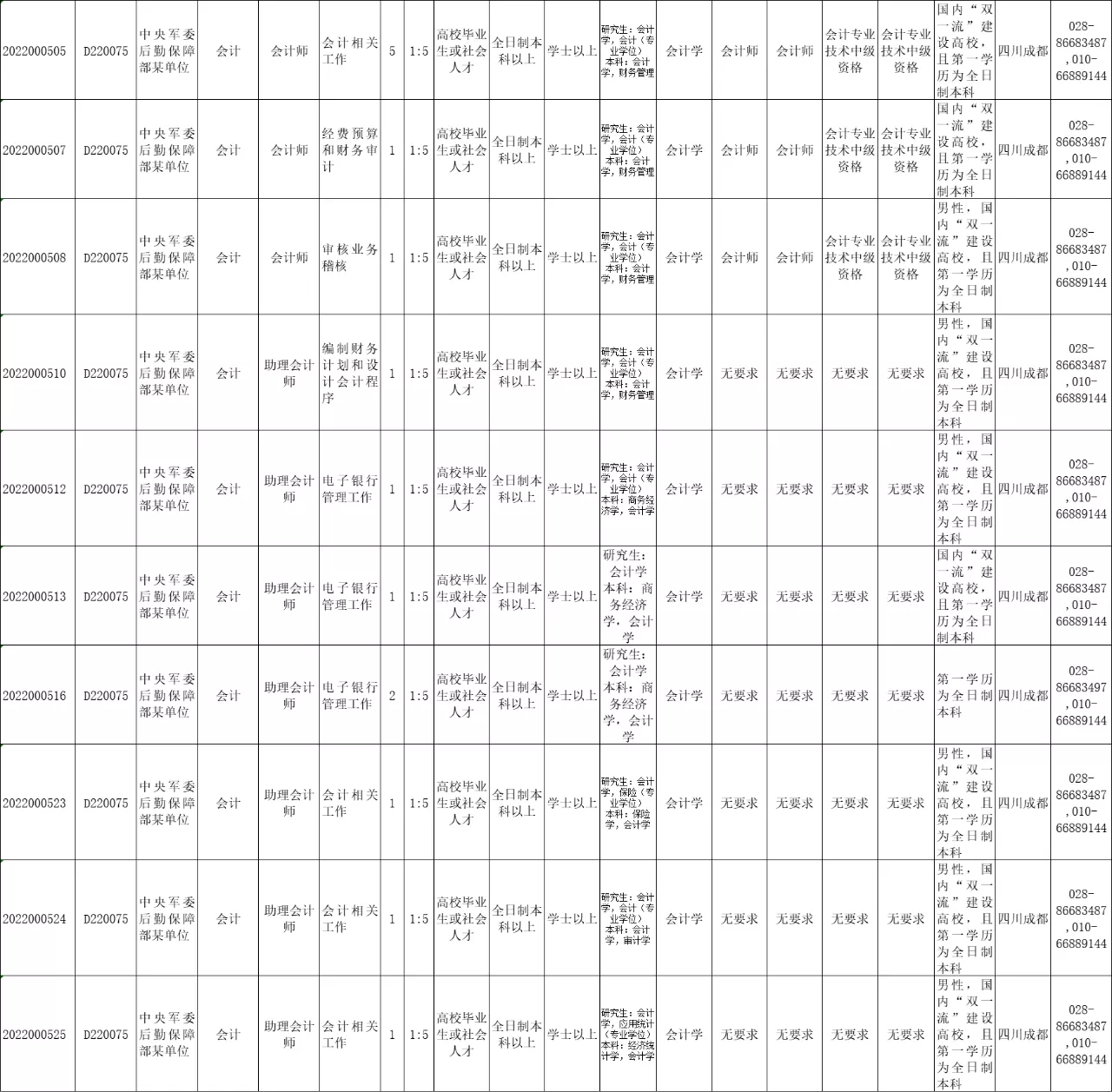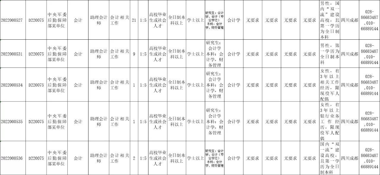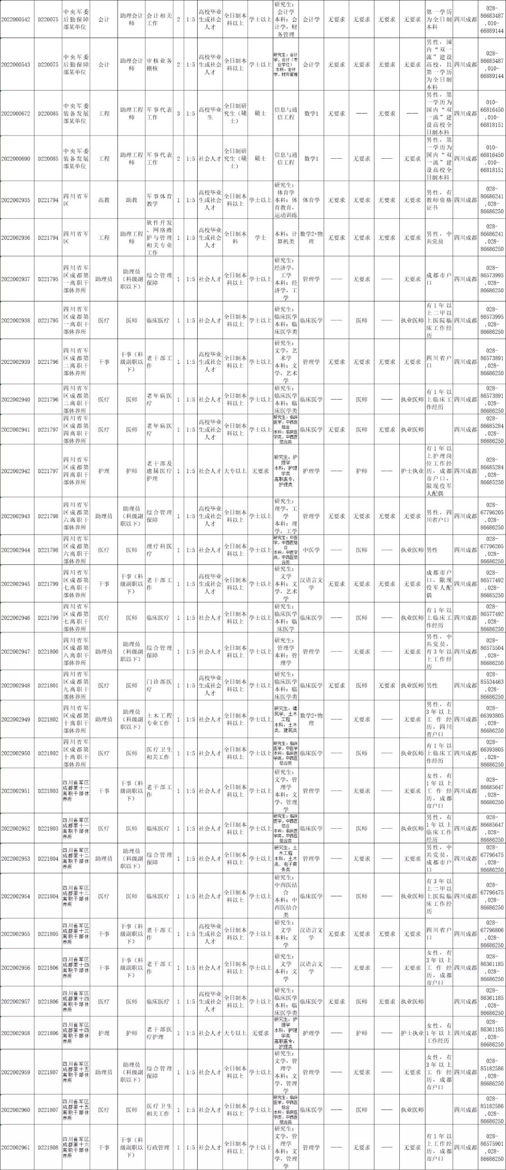 2022年全军公开招考文职人员!有这些岗位在四川(川文理就[2022]0166)