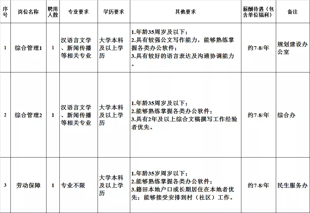 (三)招聘人数:共12名,综合执法队员岗11人、工地管理员岗1人。