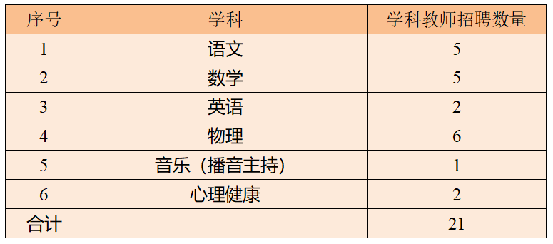 此次共招聘学科教师21名,招聘过程中,在总量不变的情况下,各学科数量由公司报通川区教科局可以进行调整。