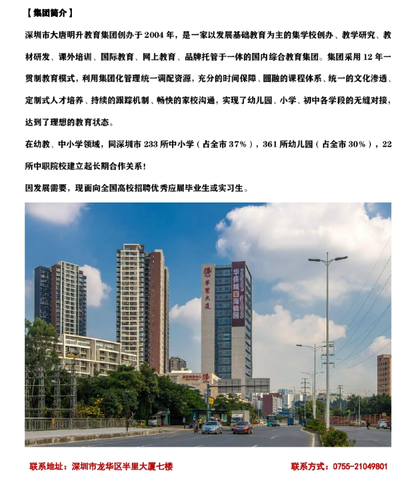 2022 年秋季深圳市大唐明升教育集团面向全国公开招聘中小学各科教师公告(川文理就[2022]0303)