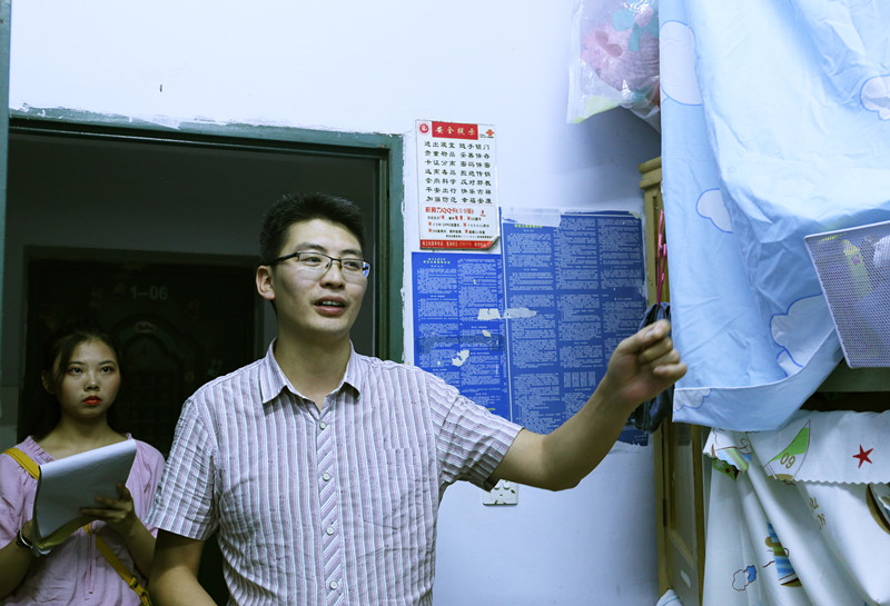 临近期末,为掌握了解员工宿舍的状况,帮助员工及时解决问题,排查员工寝室安全隐患及矛盾纠纷,加强员工教育管理,6月10日晚,公司党总支赵定贵书记、经理杜松柏教授、党总支副书记张桢老师、副经理彭金祥教授、辅导员邓超、文敏熙及各班班主任老师带领公司团总支员工会干部分八组走访员工宿舍,开展安全大检查活动。