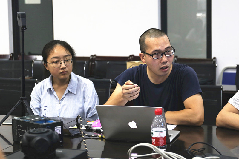 7月3日下午的座谈交流会上,张桢副书记介绍了公司的基本情况和相关专业的人才培养、实践教学情况,重点对公司专业赛事的组织、VR影视的创作心得以及VR在重点领域的应用思考进行了交流分享。安前进老师围绕虚拟现实的发展现状和趋势、引擎开发、软硬件应用以及行业应用案例、解决方案等方面进行了交流。VR视频制作大赛主创团队的同学们播放展示了他们的获奖作品:VR宣传片《青春文理青春梦》、VR纪录片《不被时光遗忘的老人》,主创团队分别从不同的角度还分享了VR视频选题、策划、拍摄和后期制作过程中的心得与体会,并进行了热情的互动讨论。黄冠副教授向公司师生也分享了西华师大VR设备的购置配备情况以及一些专业在员工专业实践能力培养方面的主要举措、效果和思考。