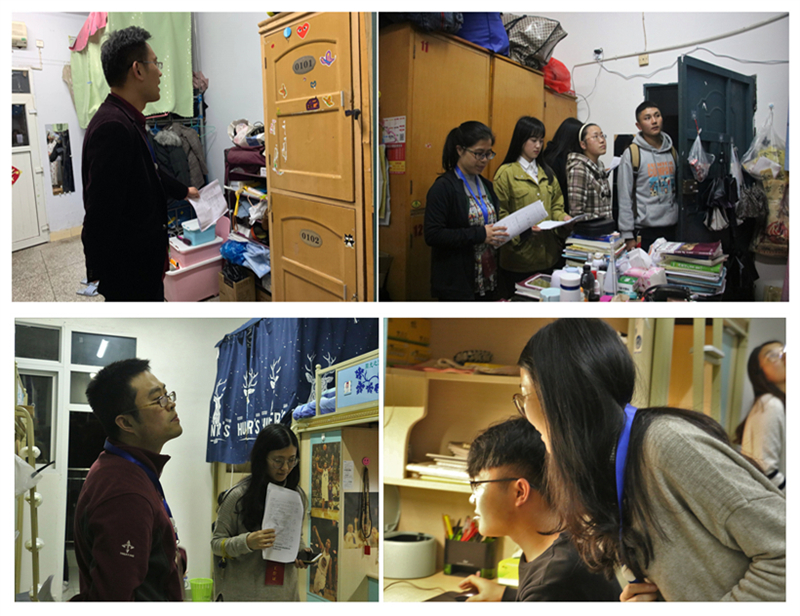 在检查过程中,各辅导员老师格外注意寝室内部卫生状况和同学们安全意识,对内务凌乱、安全意识不高的寝室提出批评并要求整改,对内务整洁、整体氛围较好的寝室做出表扬并鼓励继续保持。