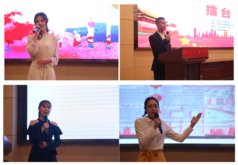 活动伊始,全体起立、奏唱团歌。接着,主持人宣读了比赛评分规则。随后,各团支部代表依次上台通过PPT展示对本支部思想建设、组织建设、学分建设、特色创新活动、集体及个人获奖情况、团结凝聚力以及对未来的展望等方面进行了富有特色的展示汇报。汉语言文学专业2017级3支部,坚定“天道酬勤”的信念,根据自身实际情况制定了日常管理制度使支部获得更好的发展;通过制定赏罚分明的奖惩制度,培育支部优良学风;通过各种社会实践与志愿服务培养专业技能知识,提高专业技能。汉语言文学专业2017级4支部以“率真北冥有鱼,青春秉持初心”为班级口号,以“学高为师,行正为范。”作为座右铭,并创办班级月刊《北冥有鱼》,采用自主式活动管理与量化式特色管理相结合的管理方式,增强班级凝聚力。广播电视学专业2016级5支部以公司“三心四能五复合”的人才培养方案为依据,深化落实“三会两制一课”与“班团一体化”制度,按时缴纳团费。以“不忘初心,砥砺前行,共享荣誉,共担责任”为口号,充分调动团支部每一个成员的积极性,通过同学们共同努力先多次获得优秀班集体、五四红旗团支部等荣誉称号。