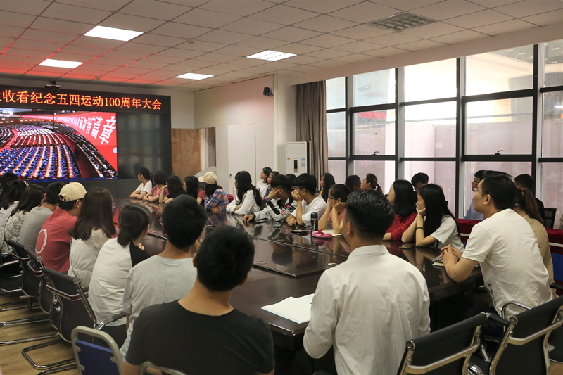 4月30日,纪念五四运动100周年大会在人民大会堂举行,公司师生在艺术传媒大楼1007会议室收看纪念五四运动100周年大会直播。公司党总支副书记、副经理张桢老师,学工办副主任兼团总支副书记宋涛老师,专职辅导员李永江老师到场和同学们一起观看。