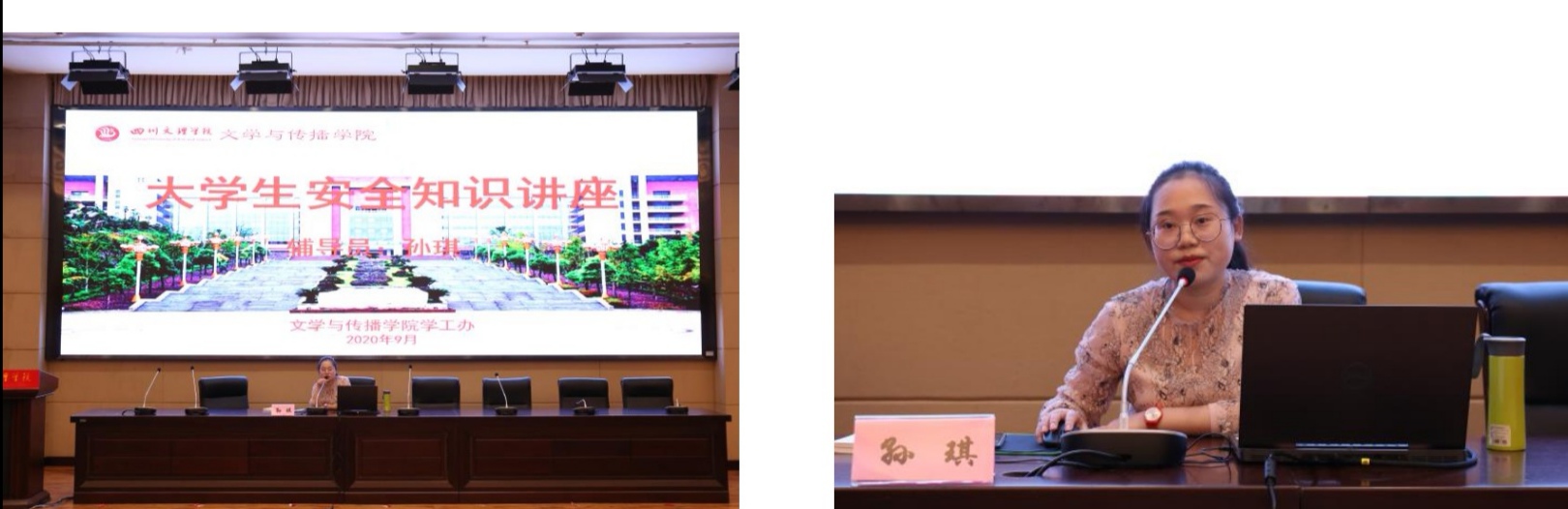专职辅导员孙琪就奖助贷政策及新生入学安全教育向新生们做详细讲解,她鼓励同学们努力学习,以优异的成绩获得奖助学金,并要求同学们高度树立安全意识。