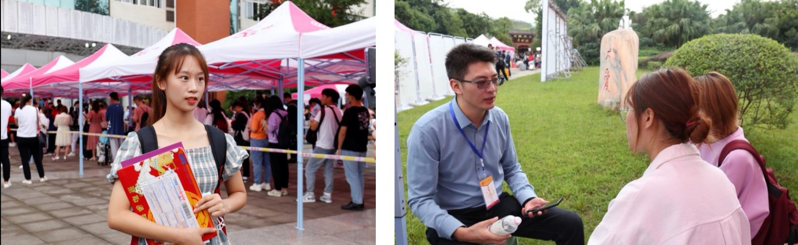 2020级新生来到大公司园,在接受采访时表现出对校园和好奇和对老员工活的向往,并对热情的学长学姐们表示感谢。3班的李九琴说:“今天告别了家乡,来到了大公司园,感觉一切都很新鲜。希望自己能够度过积极有意义的老员工活,在大学里找到自己的价值所在!”10班的韦思宇也表示,“我对自己的老员工活期待就是能学好专业知识,在空闲时间里能够多去图书馆看看书,后面努力考研。”