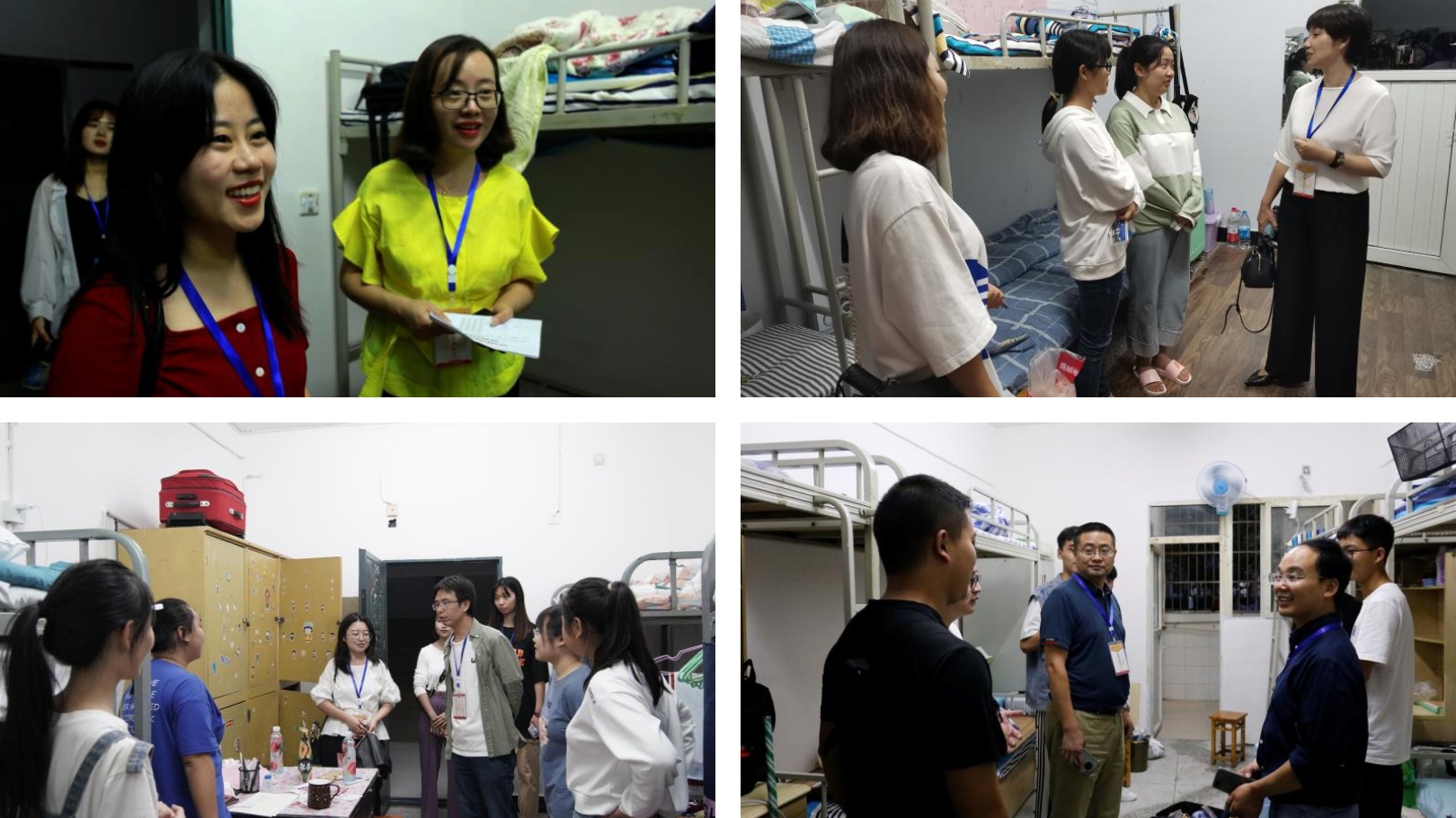老师们与同学们深入交流,询问新生是否适应寝室生活,了解员工的宿舍条件和生活诉求,并就安全问题等予以叮嘱,希望大家能够尽快转换角色,适应老员工活。