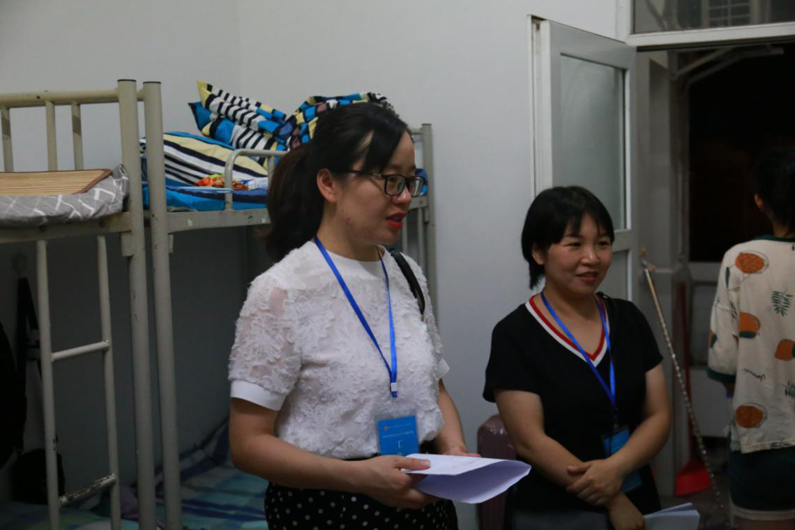 9月11日晚,公司党总支书记李红梅、经理曾宪文、正处级组织员张波、党总支副书记王文娟、副经理彭金祥、张桢、专职辅导员孙琪、李永江和兼职辅导员胡郑丽等率团总支员工会部分员工干部深入走访2019级新生寝室。