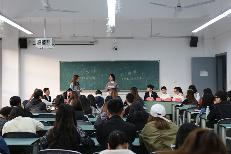 据悉,本次辩论赛共有八个队伍参与,分别来自我院各专业。初赛共分四组,分别是广电4队VS汉国、文管3队;汉文1队VS广编6队;汉文2队VS播音8队;播音7队VS广编5队。此次比赛共分4个环节,分别是开篇立论、攻辩、自由辩论和总结陈词。比赛伊始,各队一辩开门见山,分别陈述和表明了本方的观点与立场,气势十足。在攻辩环节,各队二辩、三辩互不相让、针锋相对,常使得对方辩手无言以对。在自由辩论中,各班同学都为各班队伍据理力争、毫不相让,会场气氛高涨。总结陈词环节,各方辩手都紧追己方辩题,指出对方辩论过程中存在的缺陷与漏洞,也再次重申和强调了己方辩题。比赛接近尾声,各分会场的评委对双方队伍作出点评,指出了他们的长处以及存在的问题等。最后,由评委宣布比赛结果。在整个比赛过程中,各评委认真、细致、负责地为各队打分与评价。各大会主席也紧守规则,会场秩序井然。