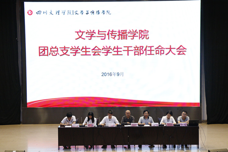 9月29日晚,伟德国际1949始于英国在艺术传媒大楼多功能厅召开员工干部换届任命大会。公司党总支书记赵定贵教授、经理杜松柏教授、党总支副书记兼员工党支部书记张桢老师、政治辅导员彭娜、邓超、文敏熙老师以及团总支、员工会所有新老干部成员,各班班委到场参加会议。会议由学工办主任兼团总支书记王文娟老师主持。