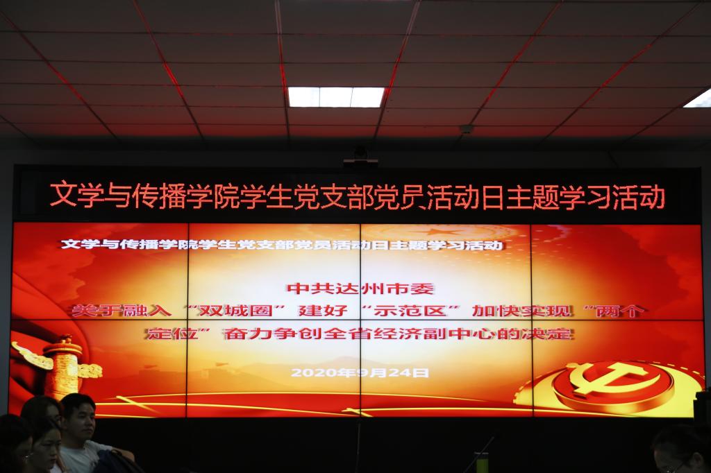 为深入学习贯彻习近平总书记重要讲话精神和四川省十一届七次全会精神,公司于9月24日下午,在艺术传媒楼1007会议室开展了“党员活动日”主题学习活动。活动由员工第二党支部书记欧胜虎主持。